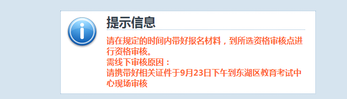 (3)反馈结果为提示信息有误(如选择资格审核点错误)的。需及时修改并提交,等待审核,再次登录报名系统查看网上审核结果。