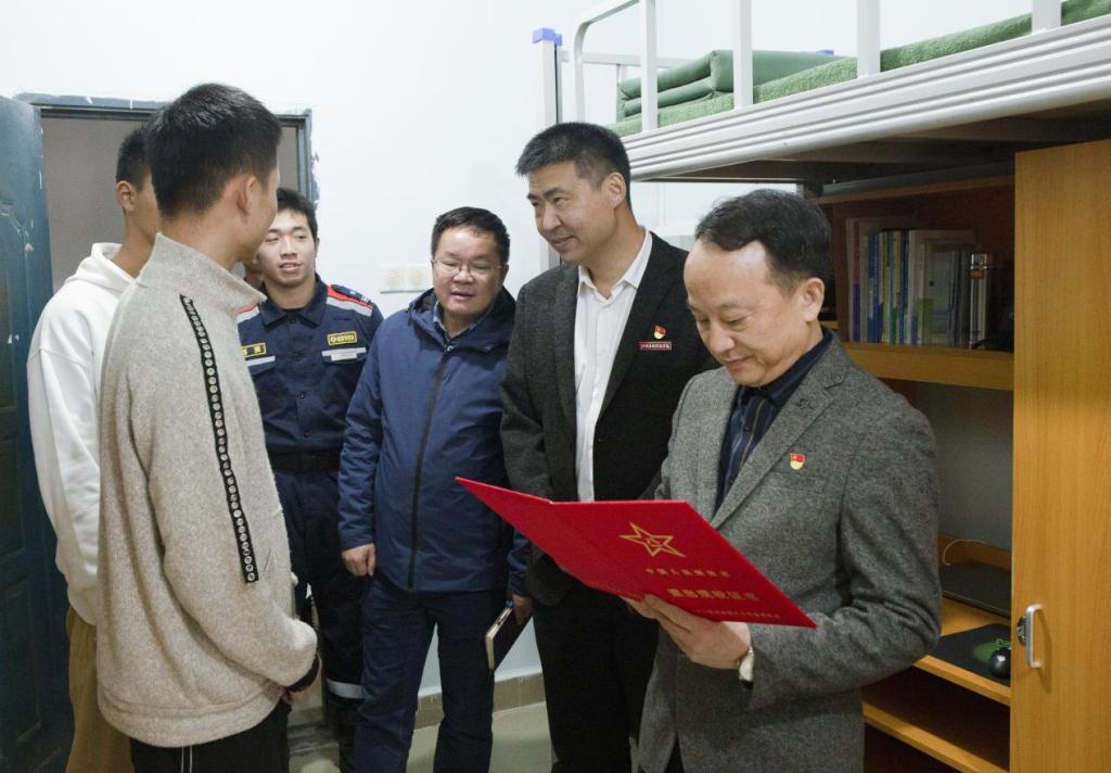 在员工宿舍,彭迪云、江星、刘春斌分头来到多个寝室送上公司的关心和问候,详细了解员工生活情况,询问天气转冷了热水使用是否方便,空调效果好不好,对学习、教学和后勤服务有何建议,勉励同学们加强锻炼,注意防护,团结友爱,快乐学习。