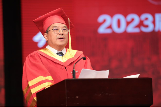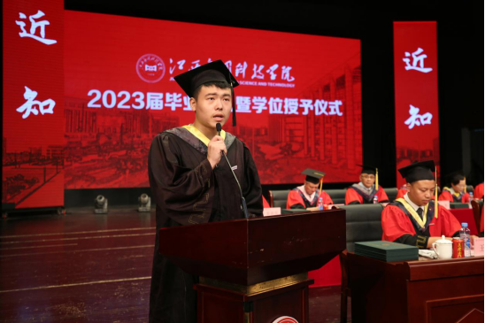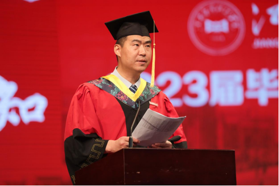 江星宣读了《关于表彰2023届优秀毕业生的决定》。随后,各位校领导分别为2023届优秀毕业生代表、毕业生代表颁发证书及毕业证书。