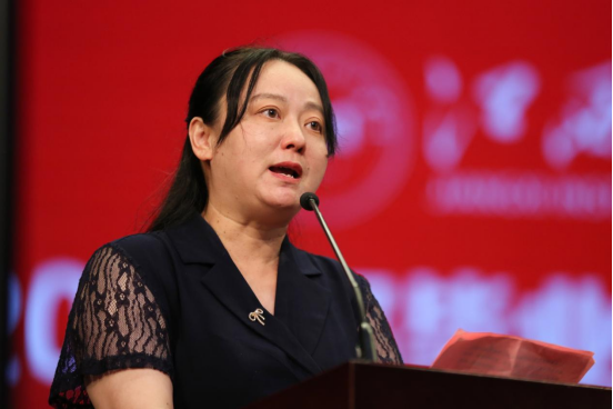 毕业生家长代表丁蕾发言。她希望同学们带着母校赋予的丰富知识和精神力量,带着老师和父母的教诲与嘱托,朝着新的目标,继续努力、勇敢拼搏。