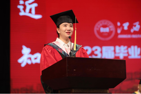 毕业典礼上,干甜宣读了《关于准予2023届员工毕业的决定》