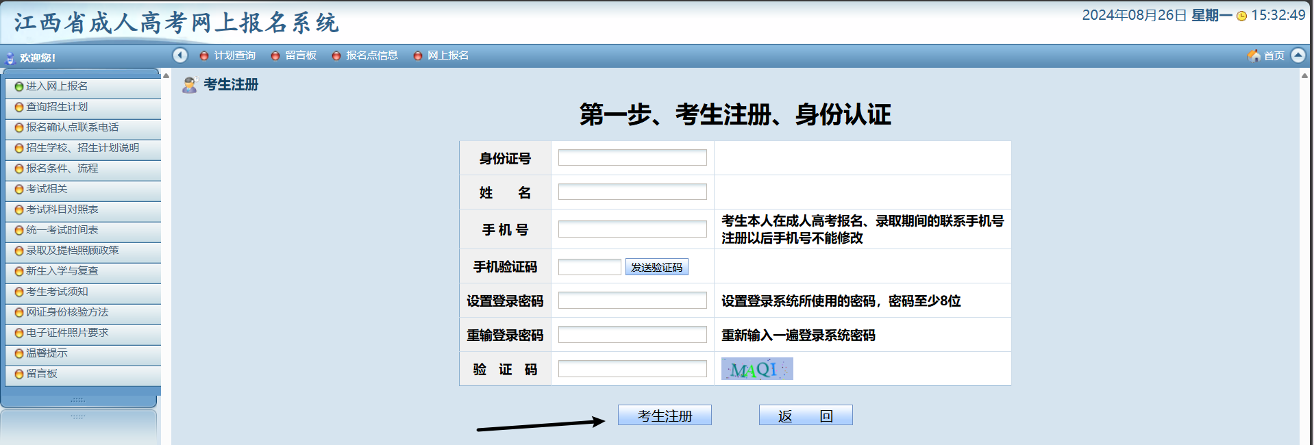 2.点击“网上报名”或“进入网上报名”按钮,进入网上注册登录界面。