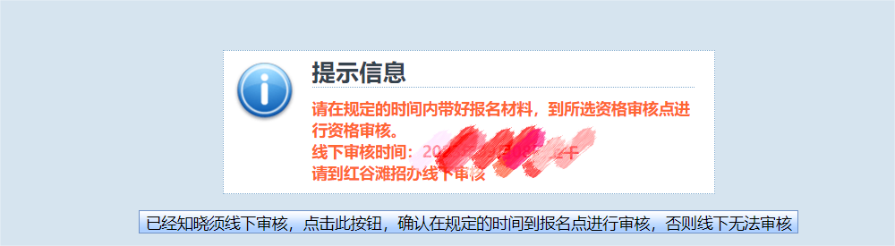(4)反馈结果为要求现场资格审核的。请于规定时间携带相关材料原件和复印件到本人选择的县(区)招生考试机构进行线下资格审核。