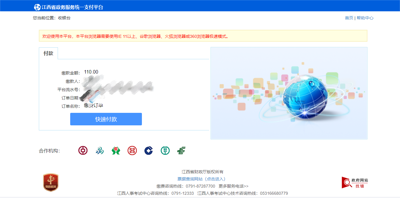 13.点击“快速付款”按钮,根据提示完成缴费。